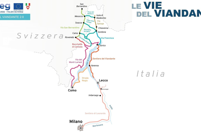 Si tratta di un importante progetto turistico che ha come Capofila per la parte Svizzera la Regione Moesa e per la parte italiana il Comune di Lecco. I soggetti privati sono: l’Ente Turistico Regionale del Moesano, la rete di imprese Montagne del Lago di Como, l’associazione North Lake Como e il Consorzio Turistico della Valchiavenna, mentre i partner pubblici sono le Comunità Montane della Valsassina, dell’Alto Lario, del Lario Orientale e della Valchiavenna e la Riserva Naturale del Pian di Spagna. La sinergia pubblico-privato è la strategia che ha portato all’assegnazione del bando europeo sull’Asse 1, quello della competitività.